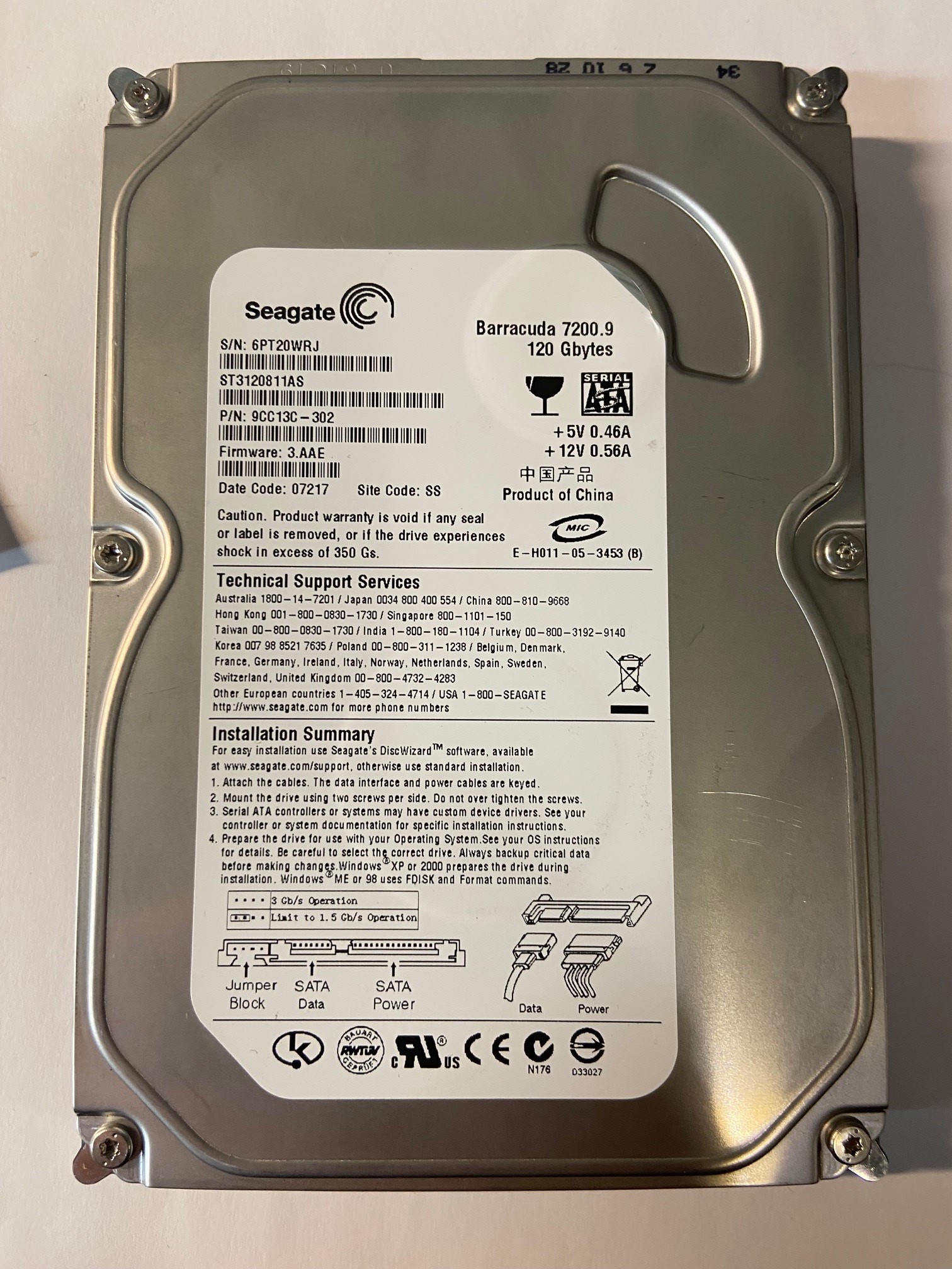 9CC13C-302 – Seagate 120GB 7200 RPM SATA hard drive
